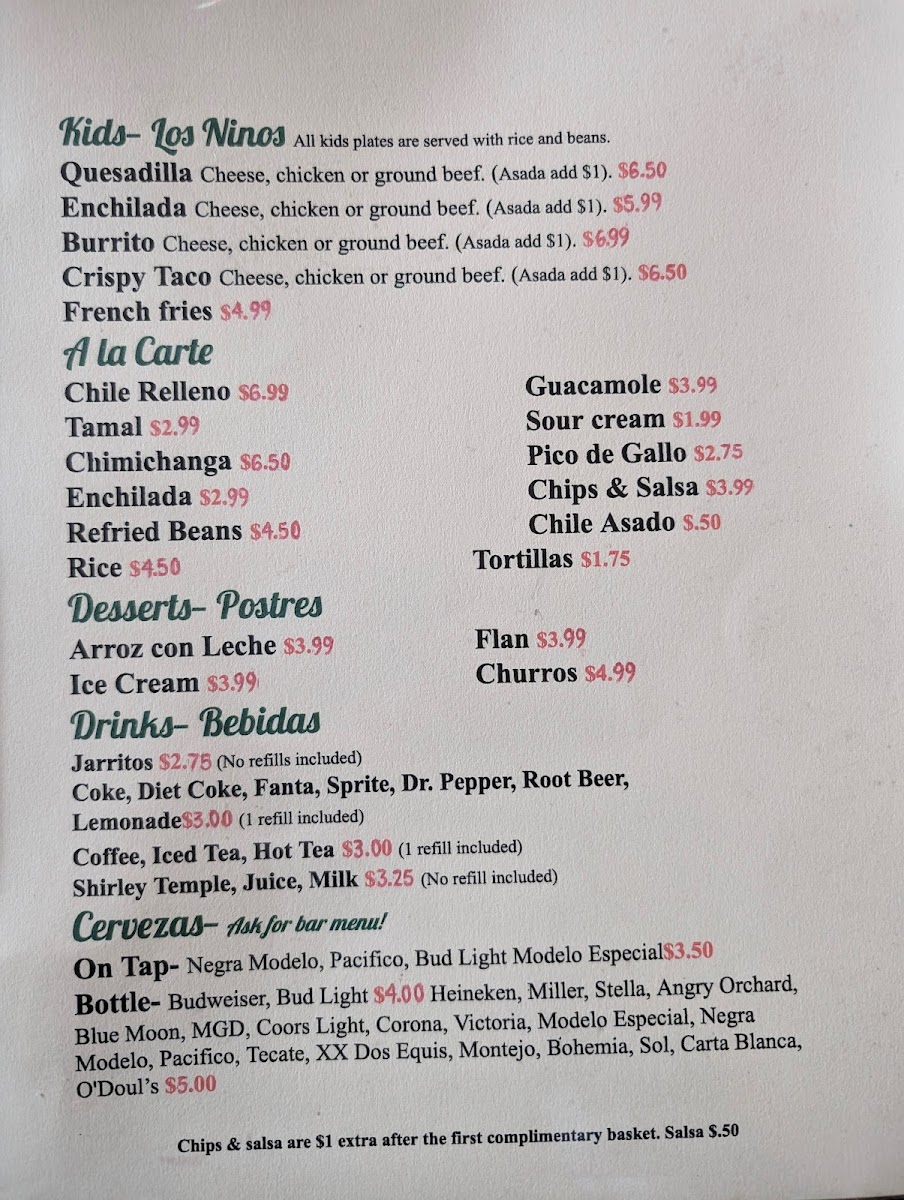 Enchilada sauce choices - Green tomatillo or red chile. Choice of chicken, beef and picadillo. Asada, or mole sauce adds $1. Served with rice and beans.