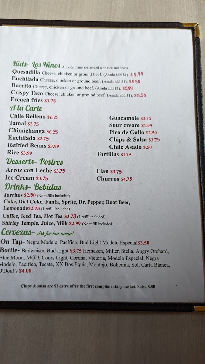 Choice-cheese, chicken or ground beef. Asada add $1. Served with rice and beans.